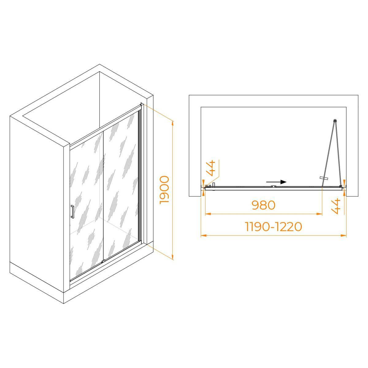 Высота общая: 1900мм Толщина стекла: 5мм Условный размер: 1200мм Размеры с диапазоном регулировок: 1190-1220 Ширина (Х): 980мм Цвет профиля: Черный Материал профиля: Анодированный алюминий Высокопрочное закаленное стекло: да Класс защиты герметичности : 2 класс герметичности Конструкция дверей: Складные Покрытие стекла анти капля : Easy Clean Регулируемый профиль: да Ролики верх/низ: да Ручка: АБС пластик Универсальная установка: да Ресурс эксплуатации: 15 лет Серия: Passage Страна производитель: Россия / Германия Гарантия: 3 год________________________________________ Душевая дверь RGW PA-21B состоит из 2-х подвижных секций стекла, которые при открывании складываются по типу "гармошки". Такая система открытия позволяет получить широкий размер входа, при небольшой ширине изделия. Трап или поддон приобретается отдельно.