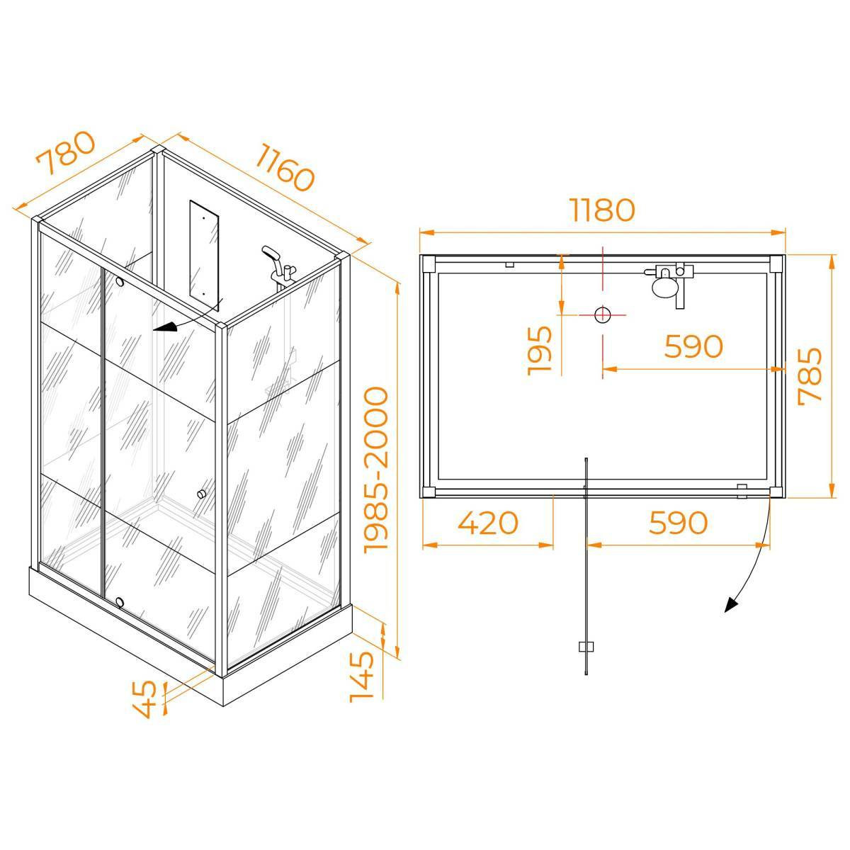 В комплектацию мы включили всё необходимое: сифон и гофру для подключения, смеситель, полочку и зеркало, надежный акриловый поддон прочностью до 150 кг и ручной душ со шлангом длиной 1 м, поворотный излив RGW SP-159 ( длина излива 120 мм, материал латунь).
