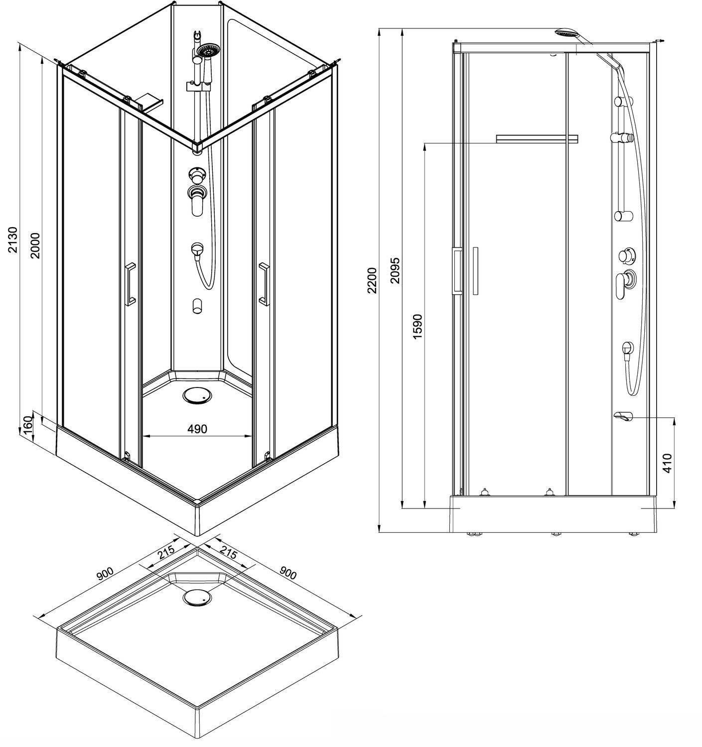 Тип: Открытая душевая кабина