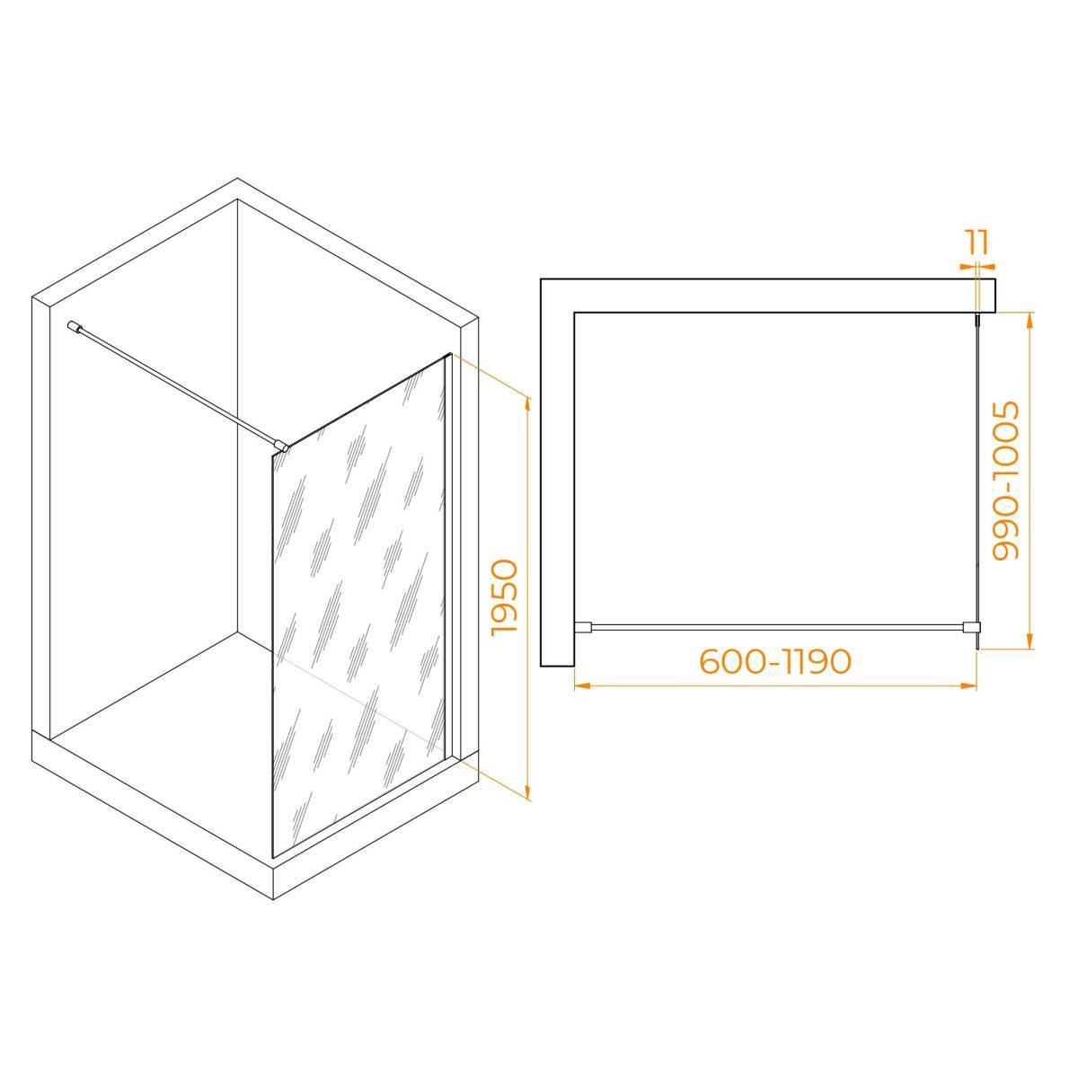 Душевая перегородка 100х195 RGW WA-002 Хром / Прозрачное закаленное стекло 6мм 35100210-11