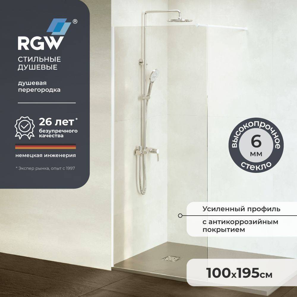 Душевая перегородка 100х195 RGW WA-002W Белый/Прозрачное закаленное стекло 6мм 35100210-15