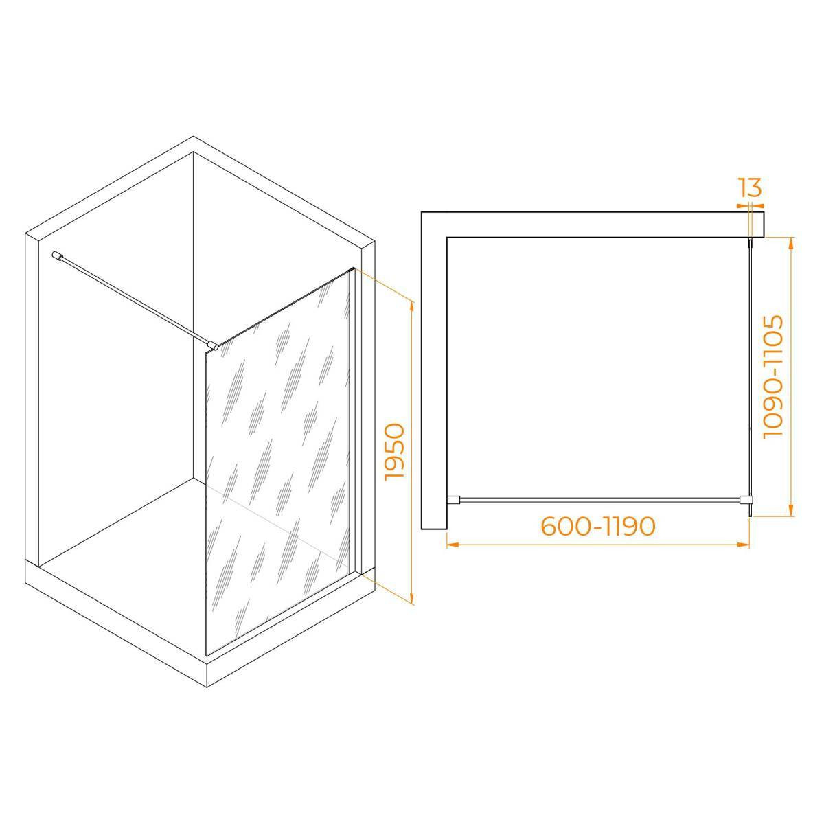 Использование регулируемого профиля позволяет настроить высоту перегородки под свой размер, создав комфортное душевое пространство. Высота перегородки составляет 195 см, что является оптимальным параметром для большинства пользователей.