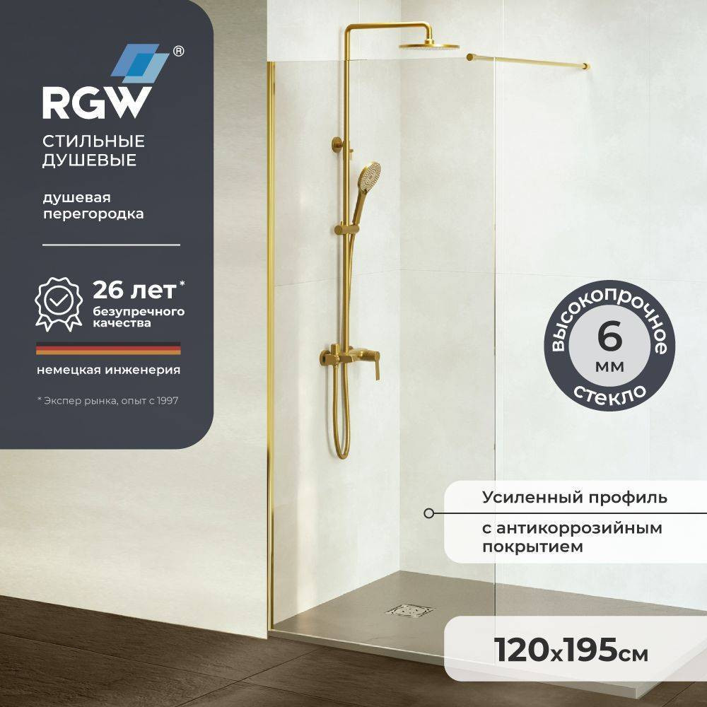 Душевая перегородка 120х195 RGW WA-002G Золотой / Прозрачное закаленное стекло 6мм 35100212-16