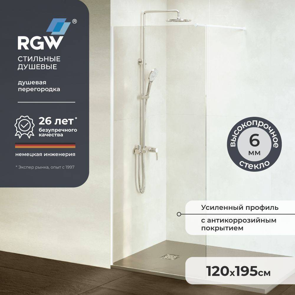 Душевая перегородка 120х195 RGW WA-002W Белый / Прозрачное закаленное стекло 6мм 35100212-15