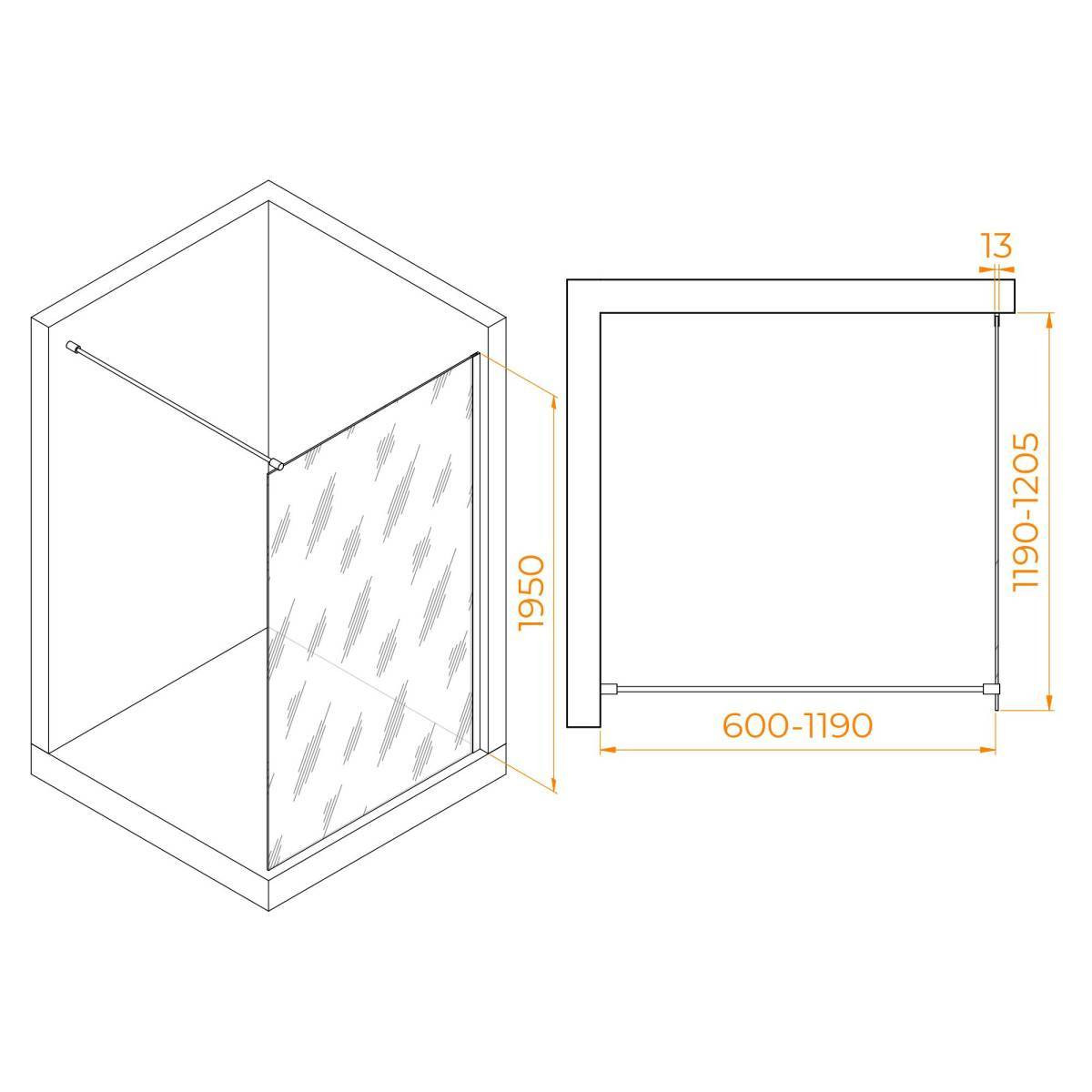 Использование регулируемого профиля позволяет настроить высоту перегородки под свой размер, создав комфортное душевое пространство. Высота перегородки составляет 195 см, что является оптимальным параметром для большинства пользователей.