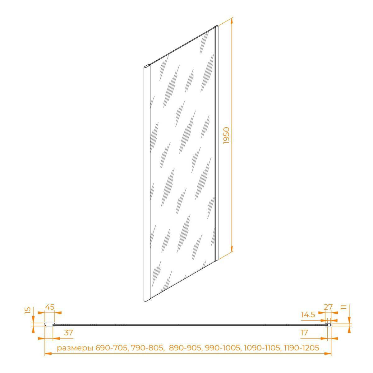 Стекло в душевую перегородка комплектуется с моделями высотой 1950 мм и цветом профиля «хром». Подходит к моделям WA-002 / SV-12 / SV-13 / LE-12 / PA-11 / PA-12 / PA-13 / PA-14 / PA-016 / PA-23 / PA-24