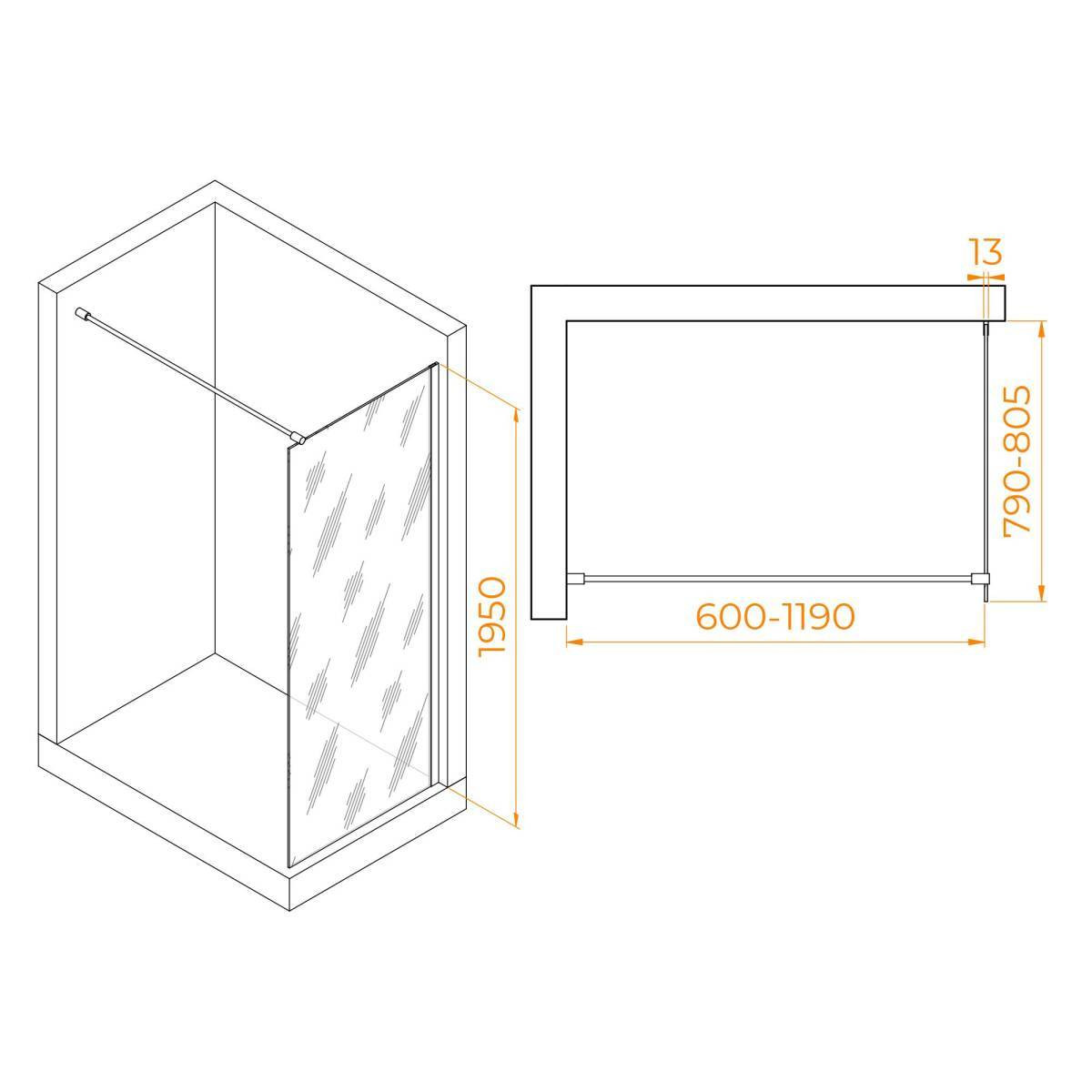 Использование регулируемого профиля позволяет настроить высоту перегородки под свой размер, создав комфортное душевое пространство. Высота перегородки составляет 195 см, что является оптимальным параметром для большинства пользователей.