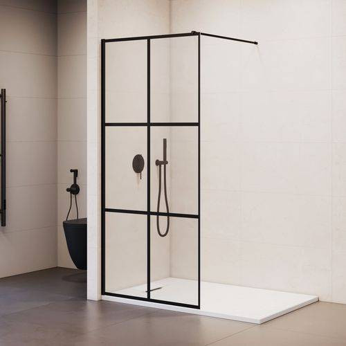 Стекло имеет прозрачный цвет, что позволяет свободно передавать свет и визуально увеличивать пространство ванной комнаты. Профиль душевой перегородки имеет черный цвет, который гармонично сочетается с большинством интерьеров ванной комнаты.
