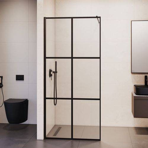 Стекло имеет прозрачный цвет, что позволяет свободно передавать свет и визуально увеличивать пространство ванной комнаты. Профиль душевой перегородки имеет черный цвет, который гармонично сочетается с большинством интерьеров ванной комнаты.