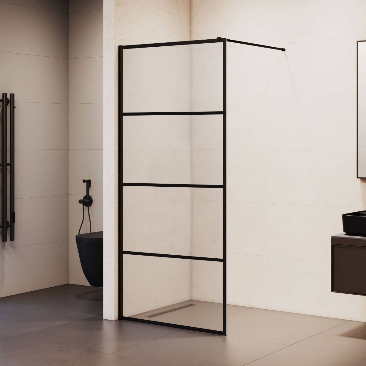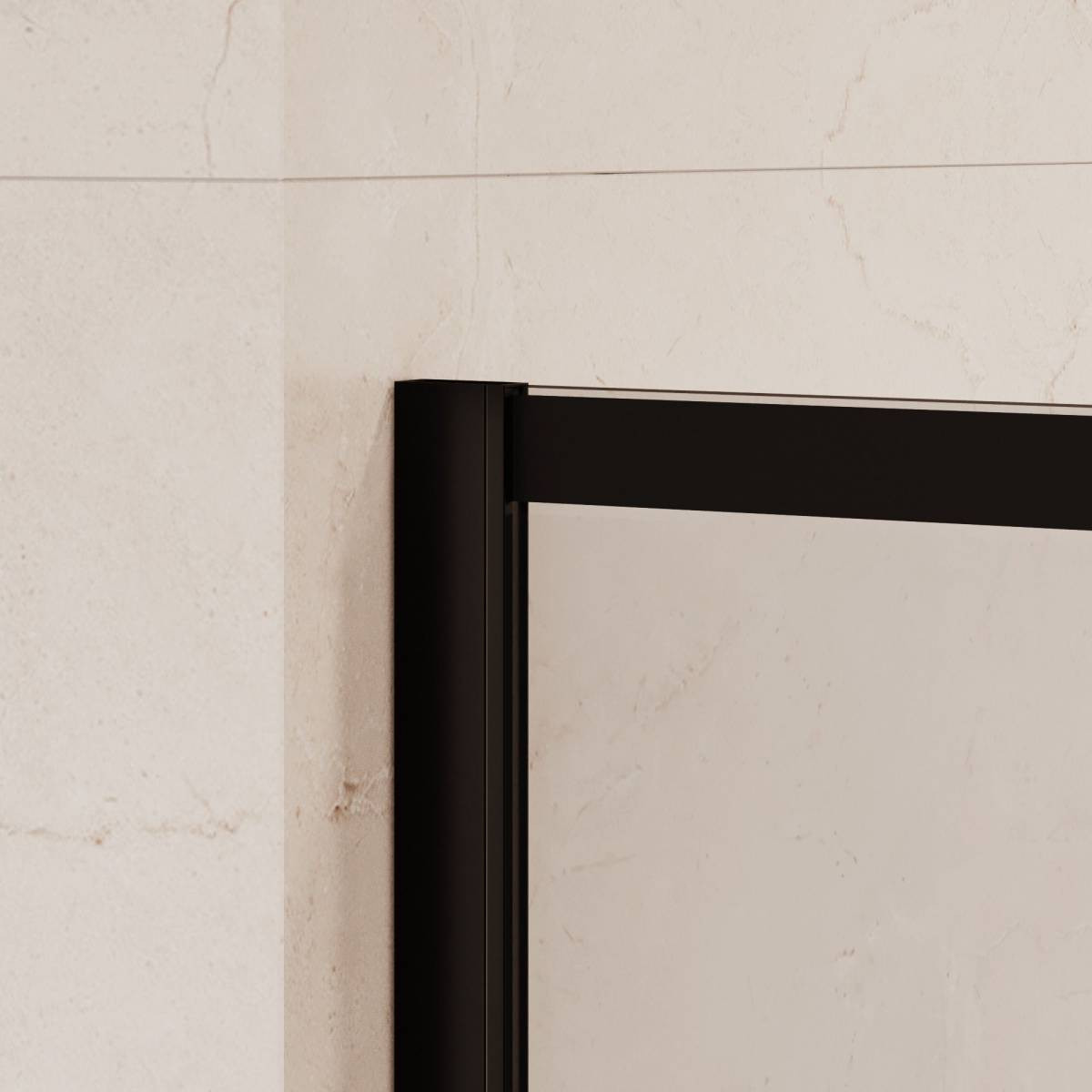 Стекло имеет прозрачный цвет, что позволяет свободно передавать свет и визуально увеличивать пространство ванной комнаты. Профиль душевой перегородки имеет черный цвет, который гармонично сочетается с большинством интерьеров ванной комнаты.