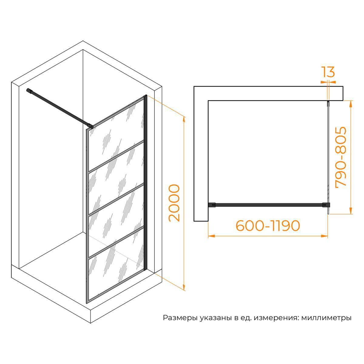 Душевая перегородка RGW WA-019 B 80х200см Чёрный/Прозрачное закаленное стекло/8 мм 351001980-84