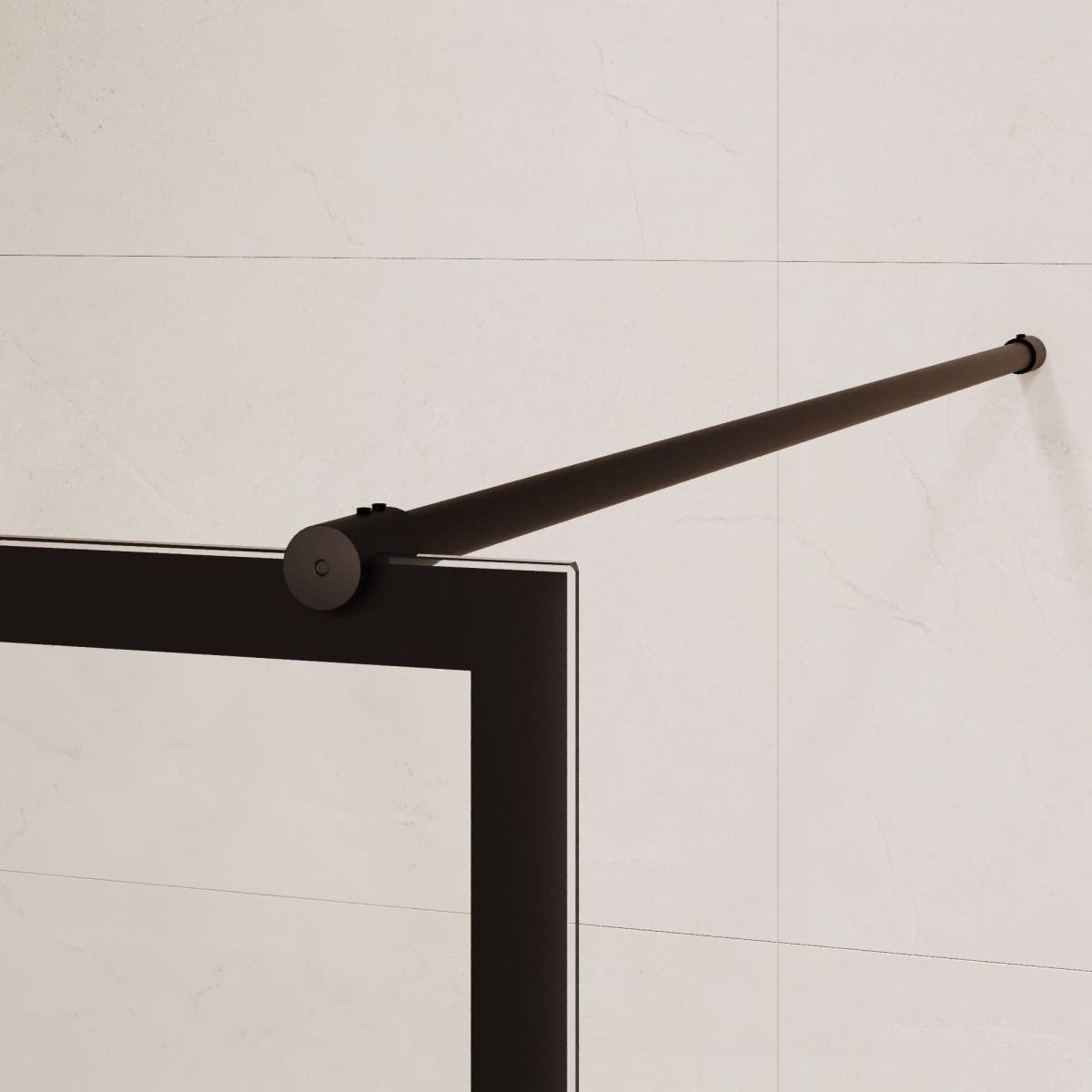 Стекло имеет прозрачный цвет, что позволяет свободно передавать свет и визуально увеличивать пространство ванной комнаты. Профиль душевой перегородки имеет черный цвет, который гармонично сочетается с большинством интерьеров ванной комнаты.