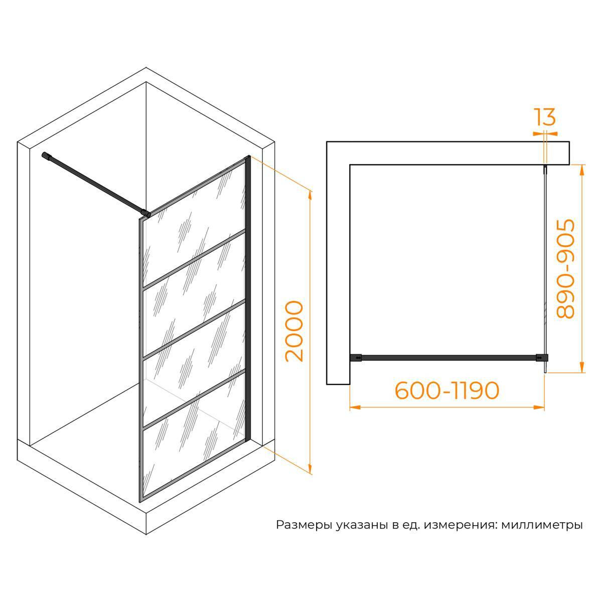 Душевая перегородка RGW WA-019 B 90х200см Чёрный/Прозрачное закаленное стекло/8 мм 351001990-84