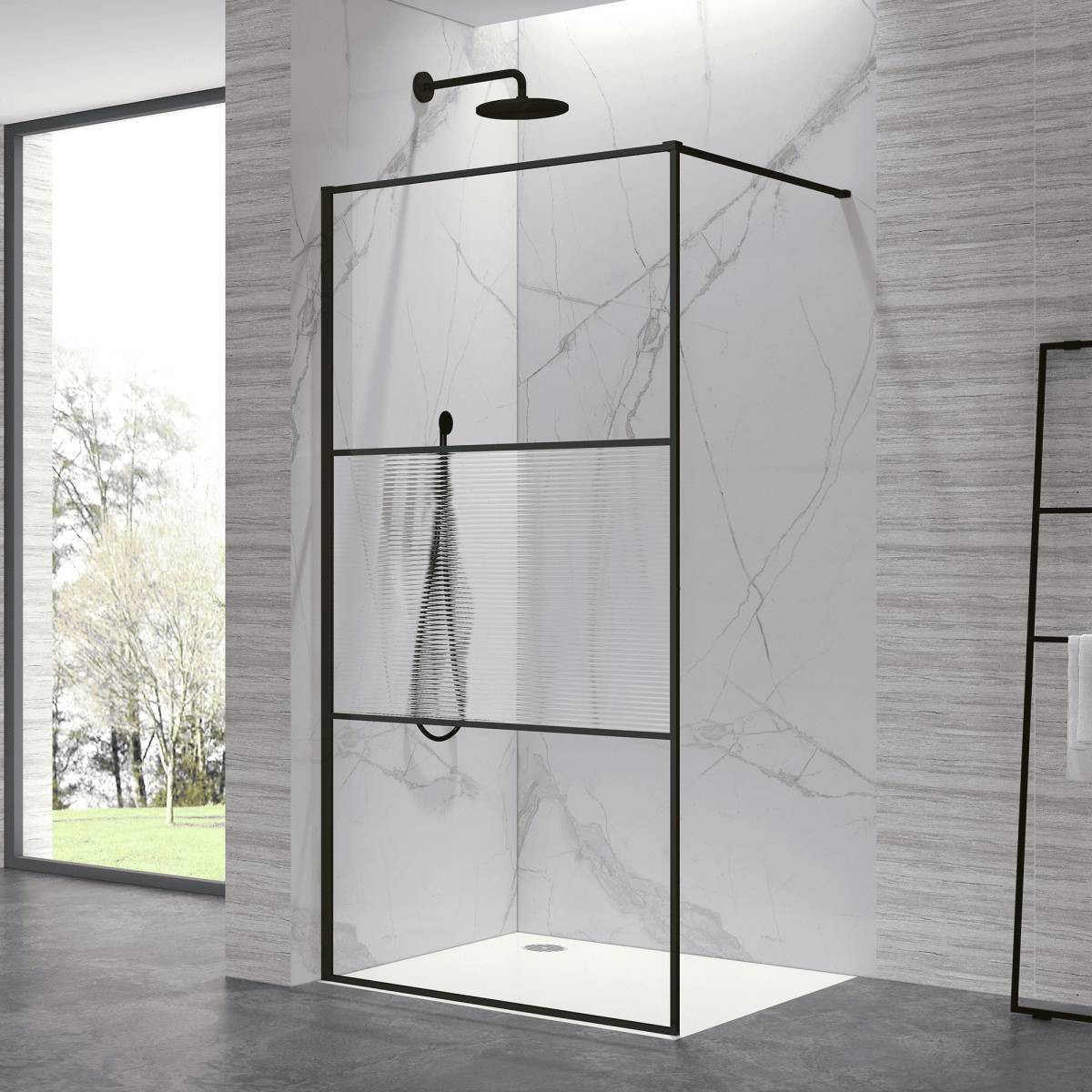 Душевая перегородка состоит из 3-х стекольных полотен (8мм), которые обрамлены изящным анодированным алюминиевым профилем!