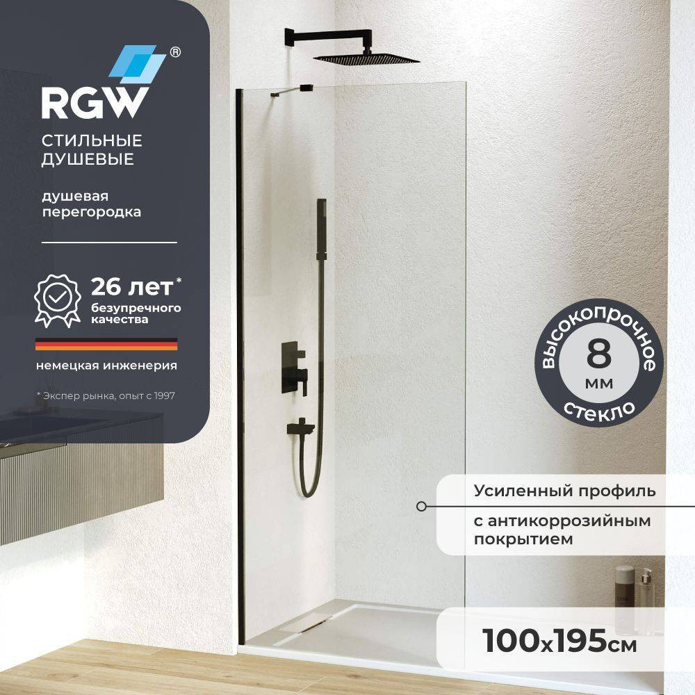 Душевая перегородка RGW WA-110 W 100х195см. Цвет чёрный, стекло закаленное прозрачное 8мм. 351011010-14