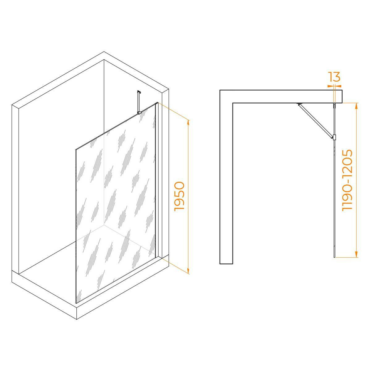 Душевая перегородка RGW WA-110 W 120х195 см. Цвет чёрный, стекло закаленное прозрачное 8мм. 351011012-14