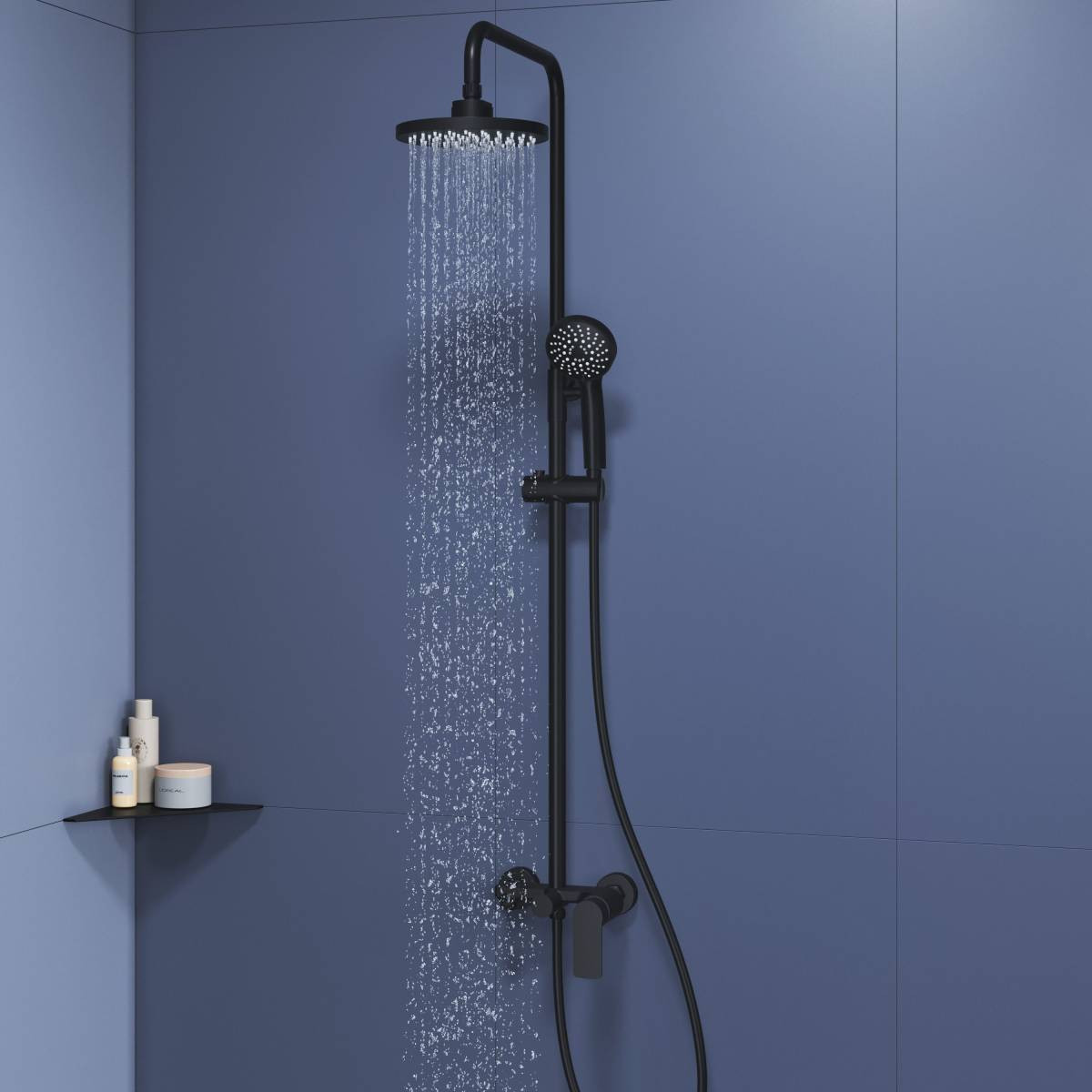 Душевая система RGW SP-26-B с тропическим душем и смесителем, комплект в ванную Черный матовый 59140126-04