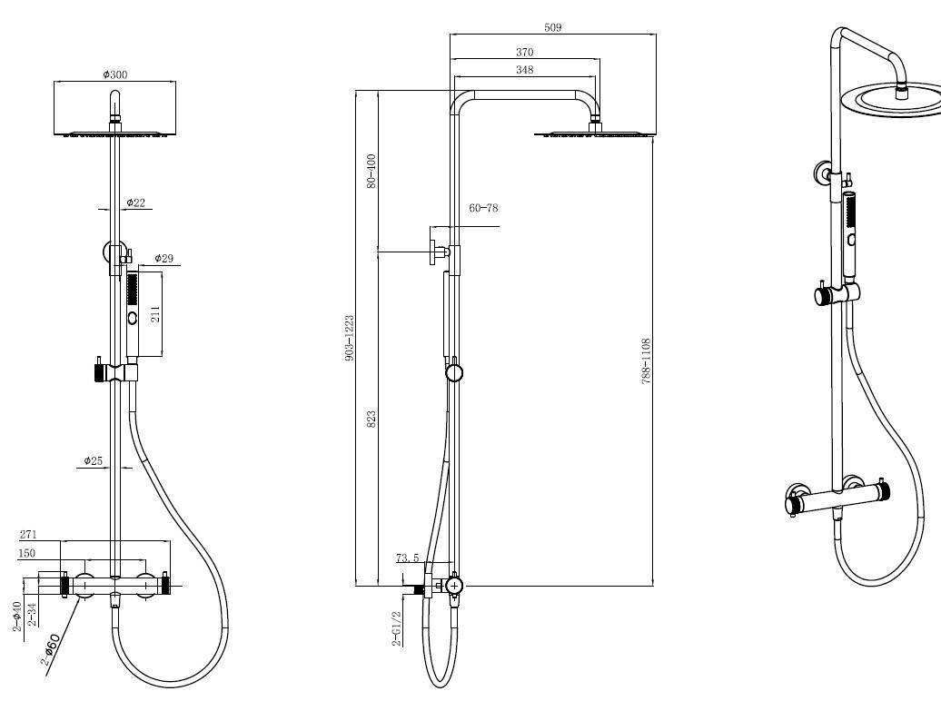 Размер верхнего душа, мм: 300