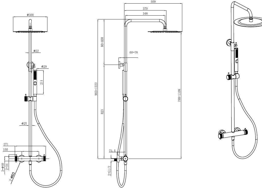 Размер верхнего душа, мм: 300