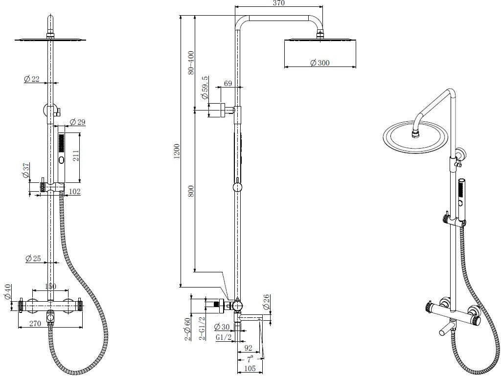 Размер верхнего душа, мм: 300