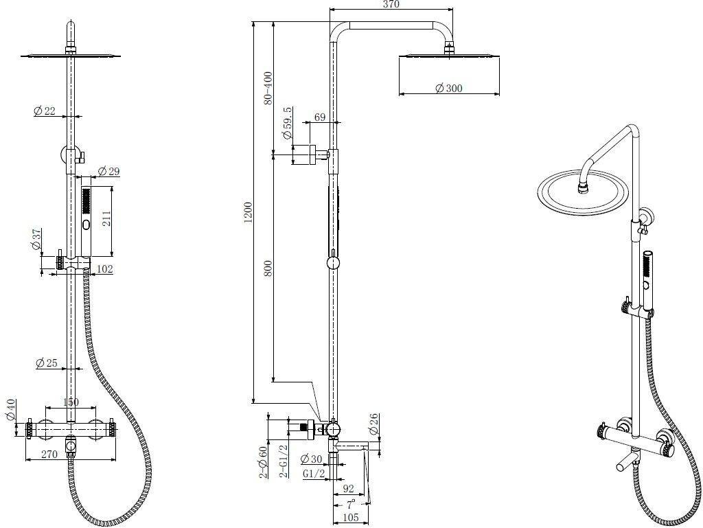 • Шланг для душа: 1,5 м шланг для душа SUS304 (EPDM inside, anti-twist, brass nut)
