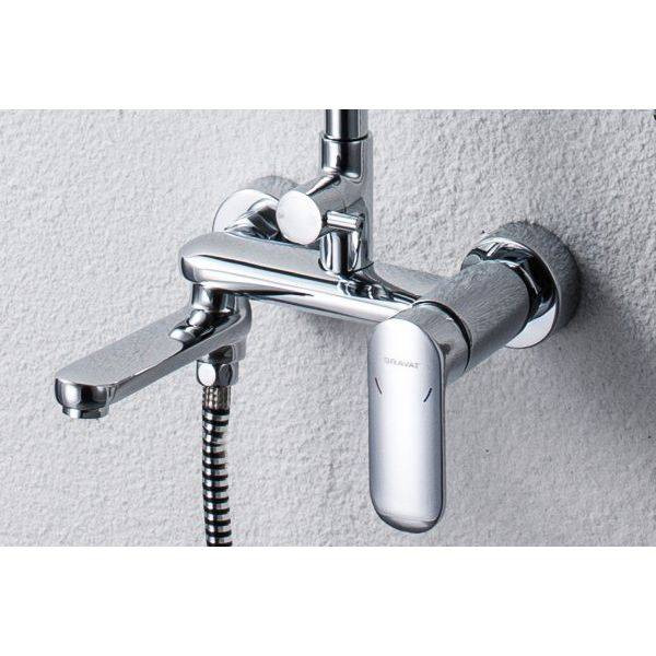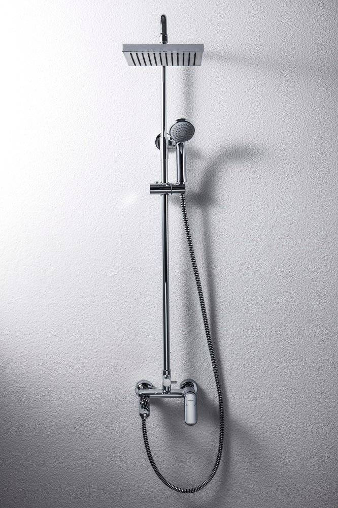 Душевая стойка для ванны Bravat Opal с большим квадратным верхним душем и смесителем. Серия известна не только своим качеством, но и высоким уровнем эргономики. Штанга изготовлена из нержавеющей стали. Хромированная зеркальная поверхность известна высокой стойкостью к появлению пятен и легко моется. В производстве лейки ручного душа и креплений душевой стойки применен ударопрочный, эластичный и нетоксичный ABS-пластик. Тройной слой гальваники обеспечивает надежное функционирование и внешний вид в течение всего периода эксплуатации. Изолированные водотоки в ручке душевой насадки защищают покрытие от разрушения и не допускают нагревания поверхности. Струйные форсунки душа легко очищаются от известкового налета благодаря гибким силиконовым вставкам. Мобильный держатель позволяет закреплять ручной душ на любой высоте.