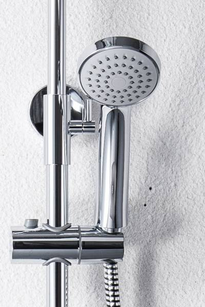 Душевая стойка для ванны Bravat Opal с большим круглым верхним душем и смесителем без излива. Серия известна не только своим качеством, но и высоким уровнем эргономики. Штанга изготовлена из нержавеющей стали. Хромированная зеркальная поверхность известна высокой стойкостью к появлению пятен и легко моется. В производстве лейки ручного душа и креплений душевой стойки применен ударопрочный, эластичный и нетоксичный ABS-пластик. Тройной слой гальваники обеспечивает надежное функционирование и внешний вид в течение всего периода эксплуатации. Изолированные водотоки в ручке душевой насадки защищают покрытие от разрушения и не допускают нагревания поверхности. Струйные форсунки душа легко очищаются от известкового налета благодаря гибким силиконовым вставкам. Мобильный держатель позволяет закреплять ручной душ на любой высоте.
