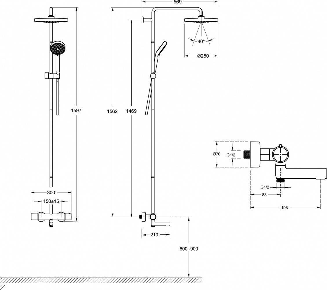 Размер верхнего душа, мм: 281