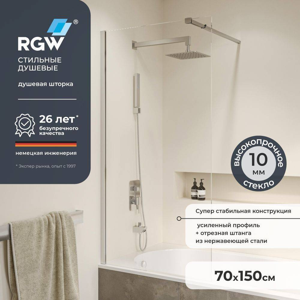 Стеклянная Шторка на ванну RGW SC-052 является отличным выбором для тех, кто ищет удобную и элегантную защиту для своей ванны. Эта шторка имеет толщину стекла 10 мм и выполнена из прозрачного стекла, которое прекрасно вписывается в любой интерьер ванной комнаты.