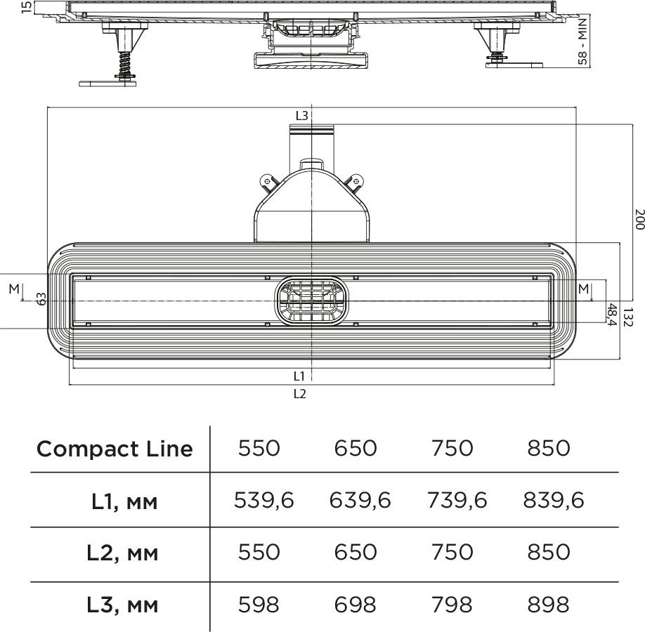 Душевой канал BETTOSERB COMPACT LINE 550 13702509BM (55*, черный матовый)