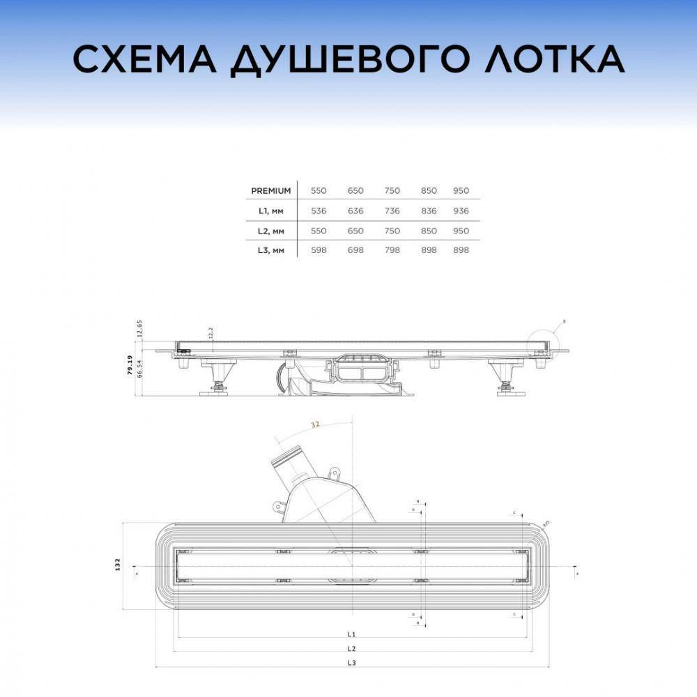 Душевой канал BETTOSERB Premium Line 650 13100004 (хром матовый)