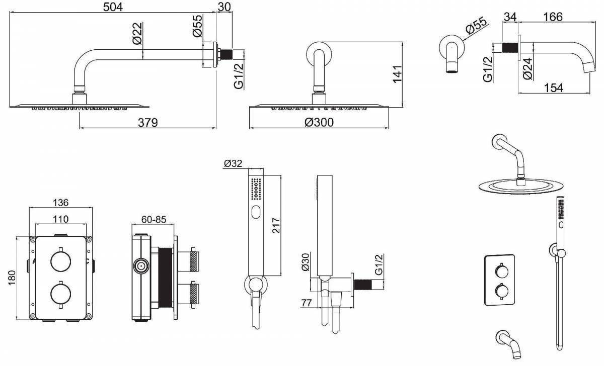 Размер верхнего душа, мм: 300