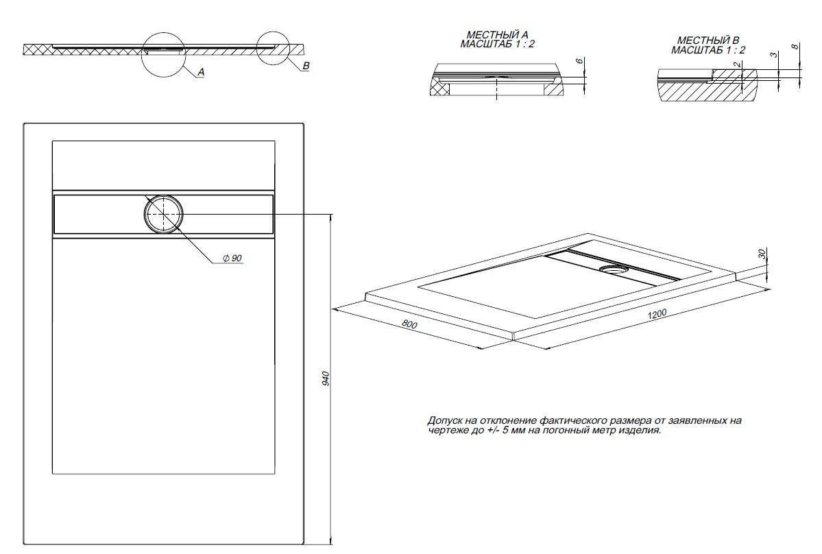 Вес изделия более чем на 20% выше, чем у поддонов из литьевого мрамора, поддон 120х80 весит более 50 кг. Слой Гелькоута до 2х мм.