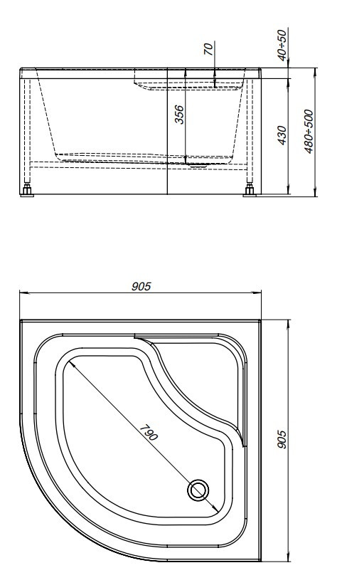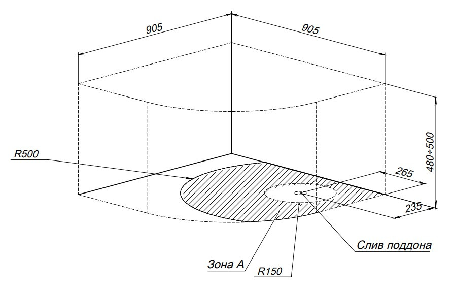 Радиус поддона: R550