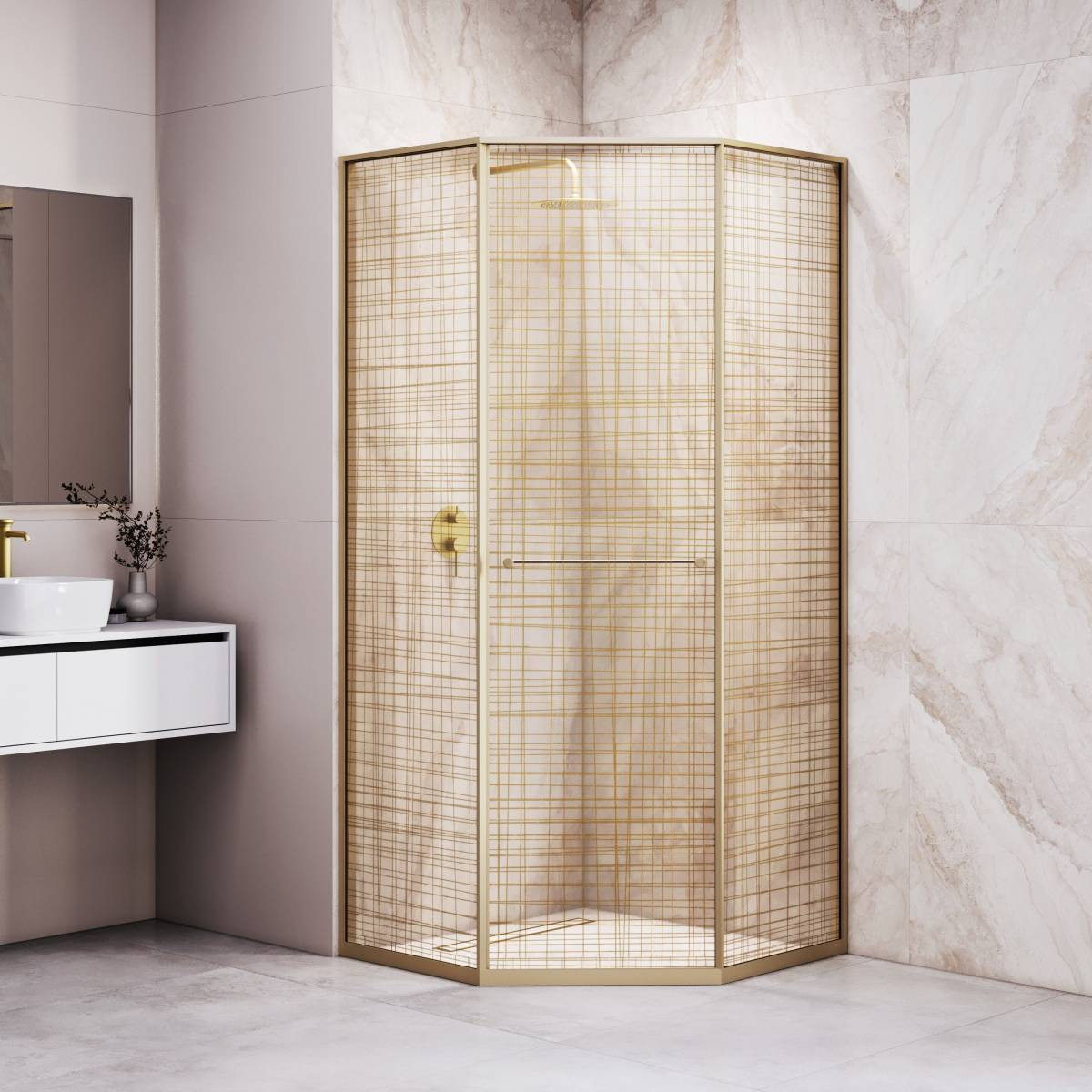 Инновационный механизм раздвижной системы при открытии плавно смещает дверь вдоль стационарного стекла при этом обеспечивая комфортный вход и просторное пространство внутри душевого угла.
