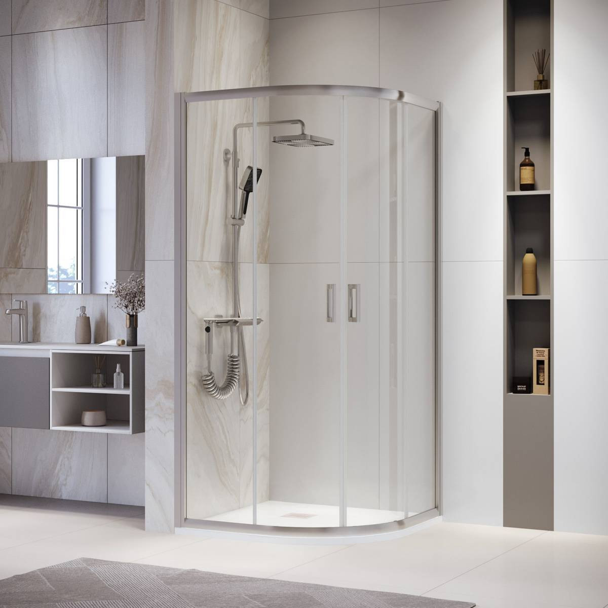 Форма данного душевого уголка полукруглая, что позволяет эффективно использовать пространство ванной комнаты и создает уютную и комфортную обстановку.