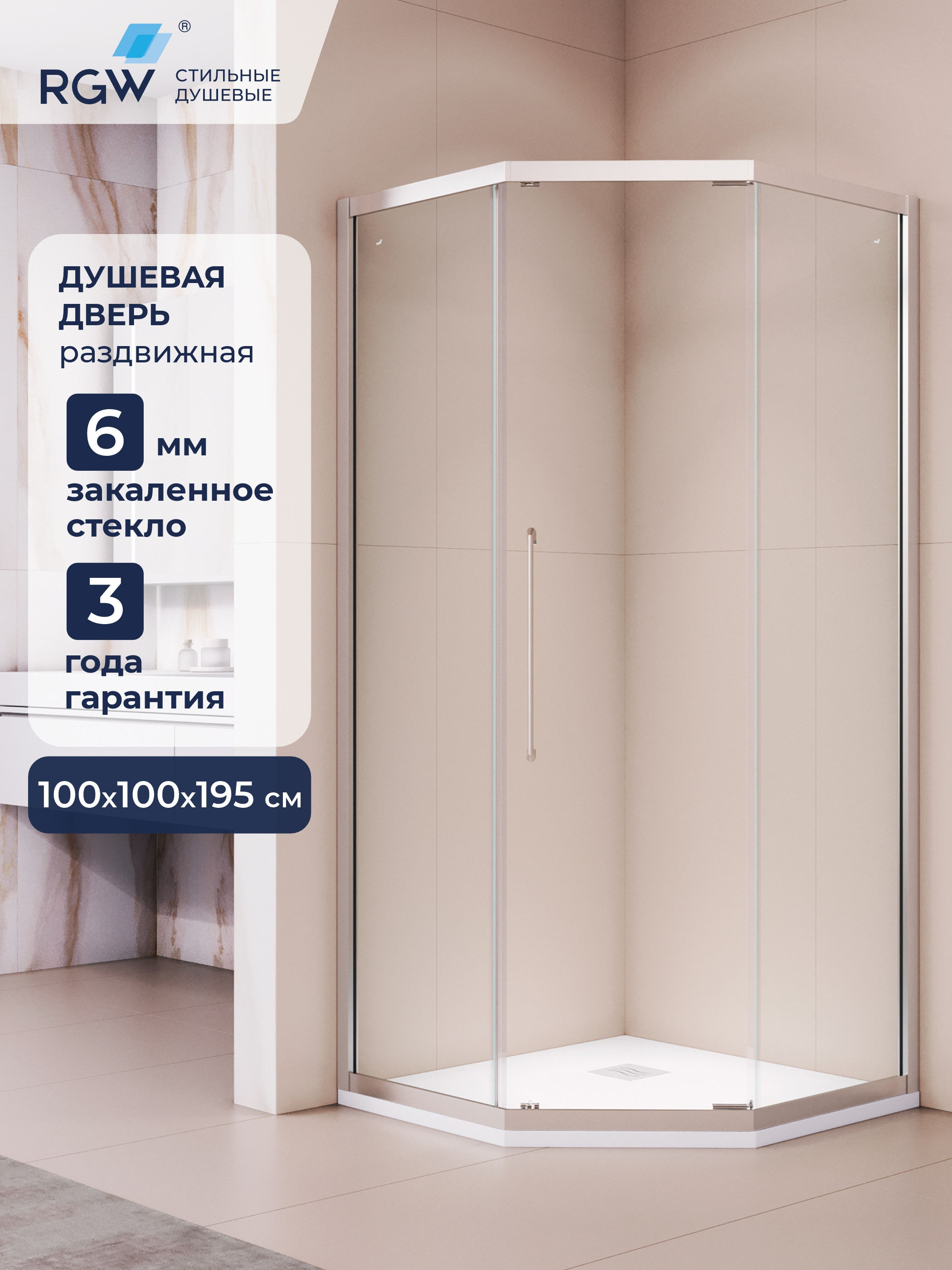 Душевой уголок RGW PA-86 NEW (пятиугольный, стекло 6 мм, раздвижная дверь)