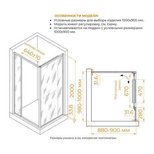 Душевой уголок 100х90 RGW LE-45 стекло прозрачное
