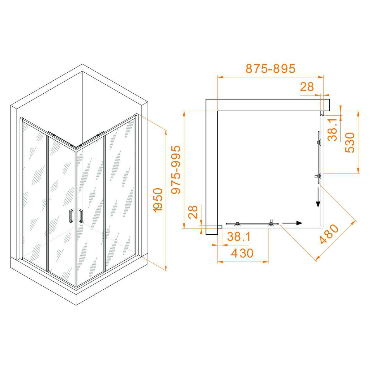 Высота душевого угла составляет 1950 мм, что позволит вам комфортно принимать душ, даже если вы высокого роста. Конструкция дверей раздвижная, что экономит место в ванной комнате. Этот душевой уголок также имеет регулируемый профиль, что позволяет легко настроить его на любые условия установки.