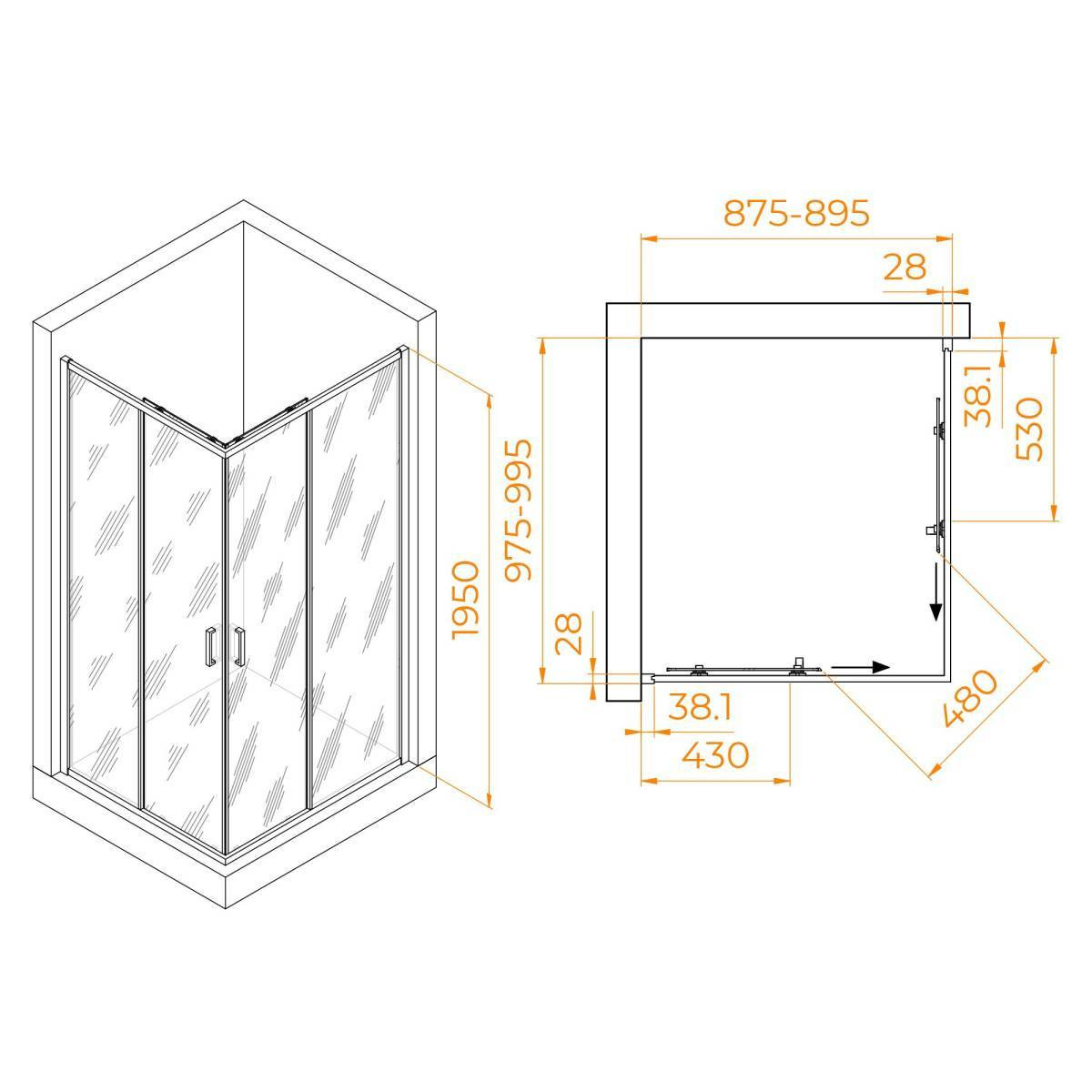 Высота душевого угла составляет 1950 мм, что позволит вам комфортно принимать душ, даже если вы высокого роста. Конструкция дверей раздвижная, что экономит место в ванной комнате. Этот душевой уголок также имеет регулируемый профиль, что позволяет легко настроить его на любые условия установки.