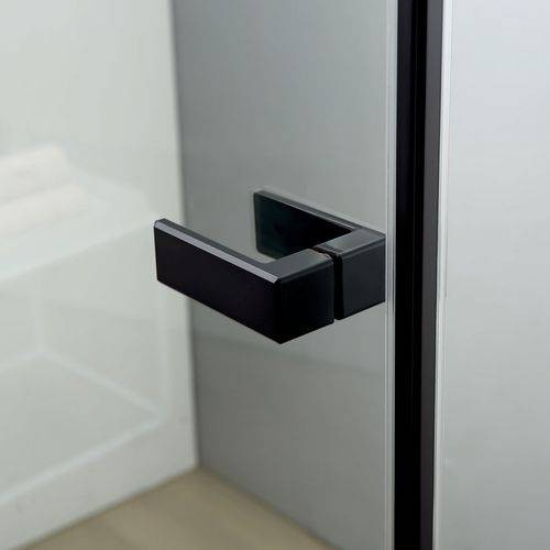 Душевой уголок состоит из трех полотен стекла - два стационарных полотна и одно полотно «Дверь», которая распахивается на широкий вход, благодаря двум элегантным прямоугольным петлям, типа «стекло-стекло».