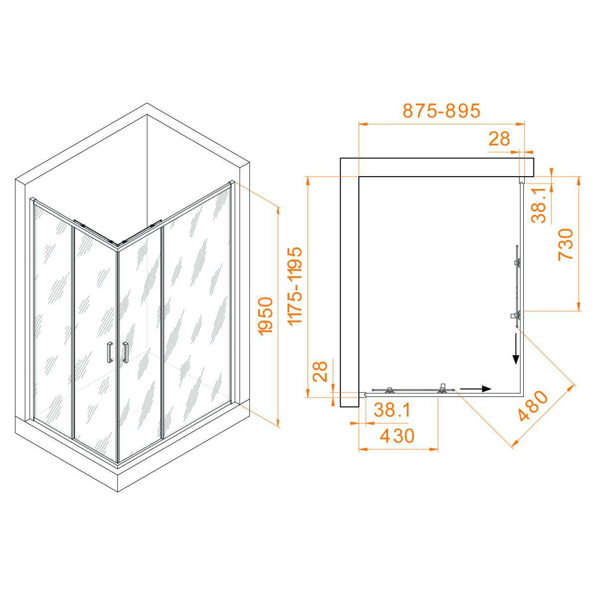 Высота душевого угла составляет 1950 мм, что позволит вам комфортно принимать душ, даже если вы высокого роста. Конструкция дверей раздвижная, что экономит место в ванной комнате. Этот душевой уголок также имеет регулируемый профиль, что позволяет легко настроить его на любые условия установки.