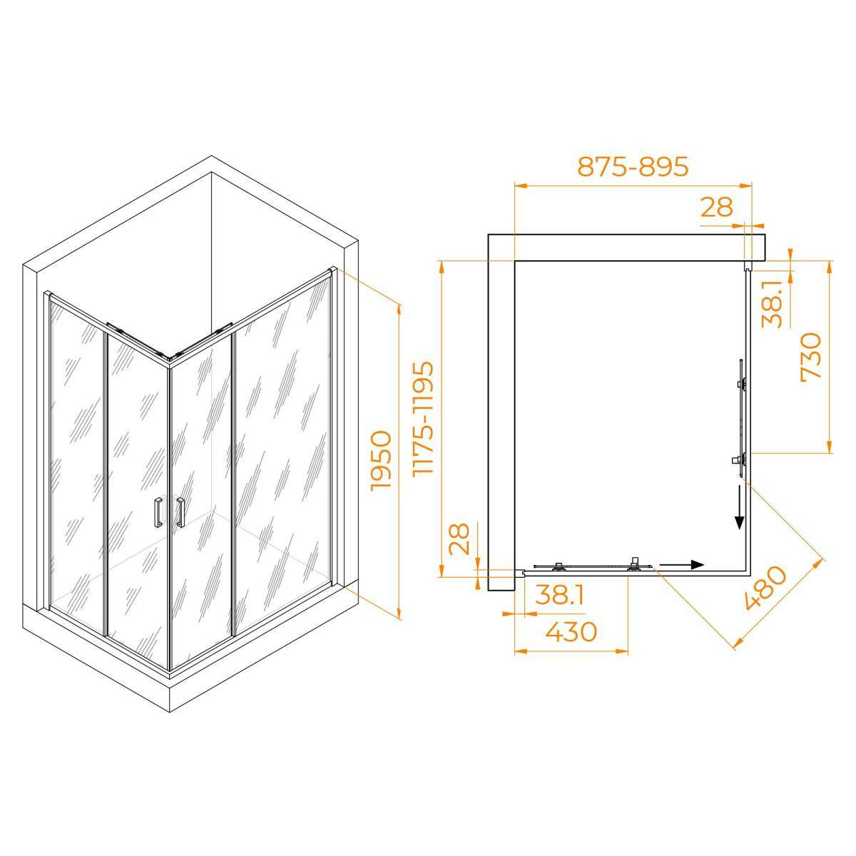 Высота душевого угла составляет 1950 мм, что позволит вам комфортно принимать душ, даже если вы высокого роста. Конструкция дверей раздвижная, что экономит место в ванной комнате. Этот душевой уголок также имеет регулируемый профиль, что позволяет легко настроить его на любые условия установки.