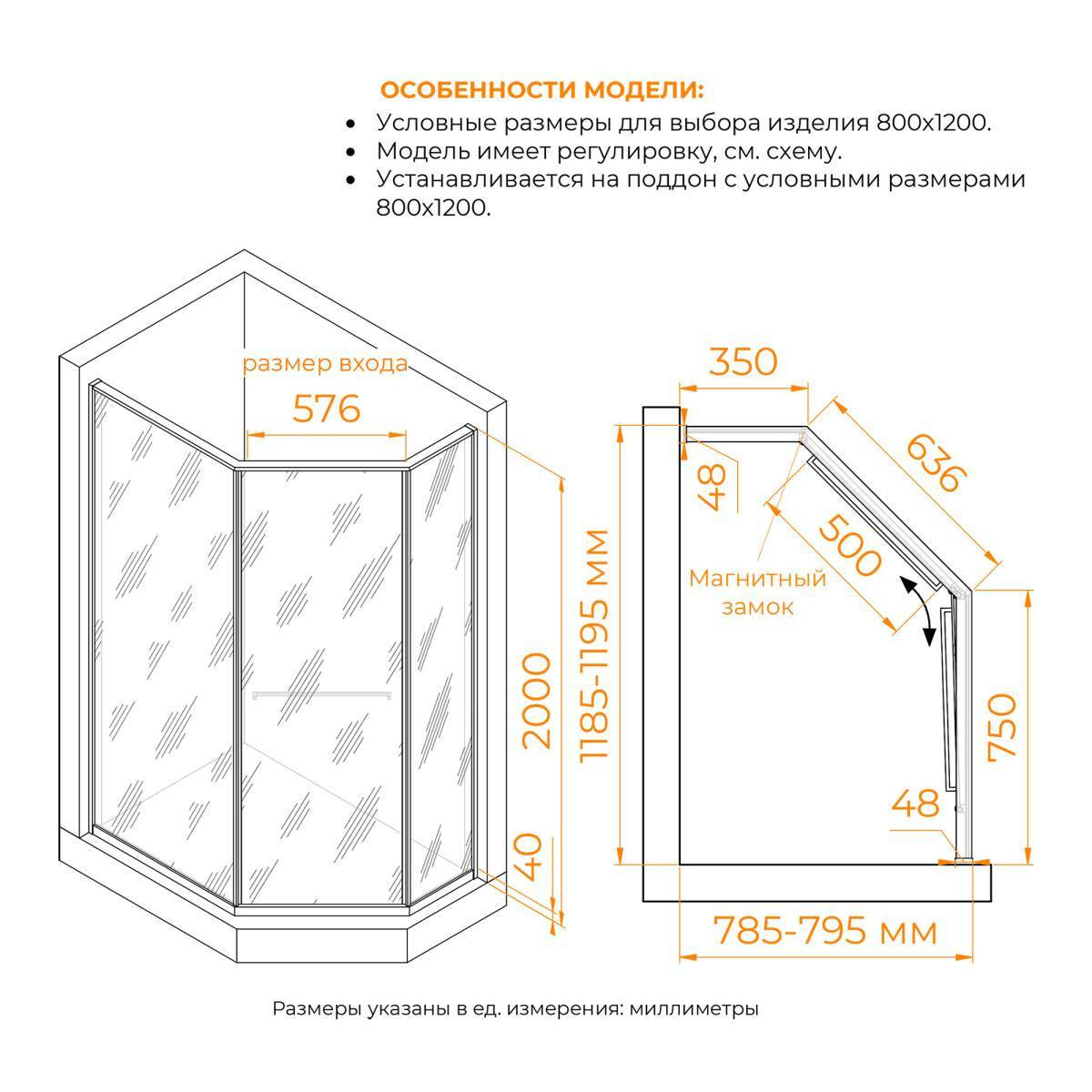 Душевые углы можно установить, как на плитку с трапом так и на поддон соответствующего размера. (с поддоном стандартного размера не совместим (см. схему изделия)
