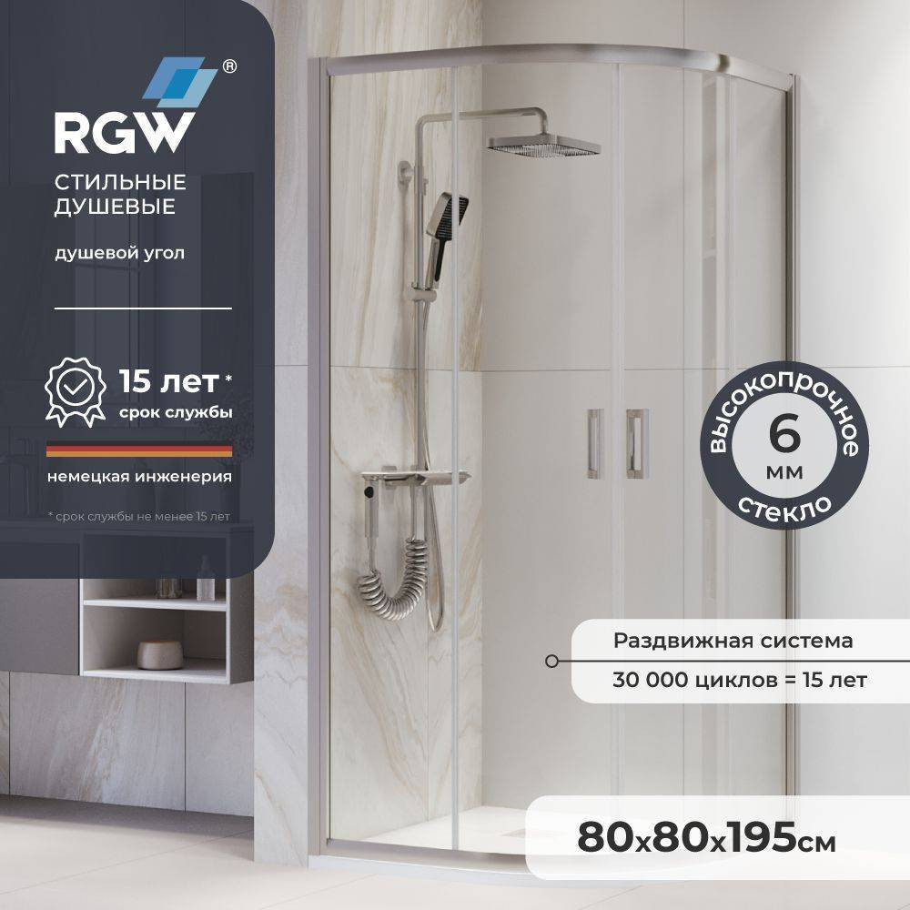 Душевой уголок 80* 80*195 RGW PA-52 Полукруг/Хром/Прозрачное/6 мм 03085299-14 совместим с Душевым поддоном RGW BP/CL-S 800x800 16180488-51, код товара для поиска на маркетплейс 523317771.