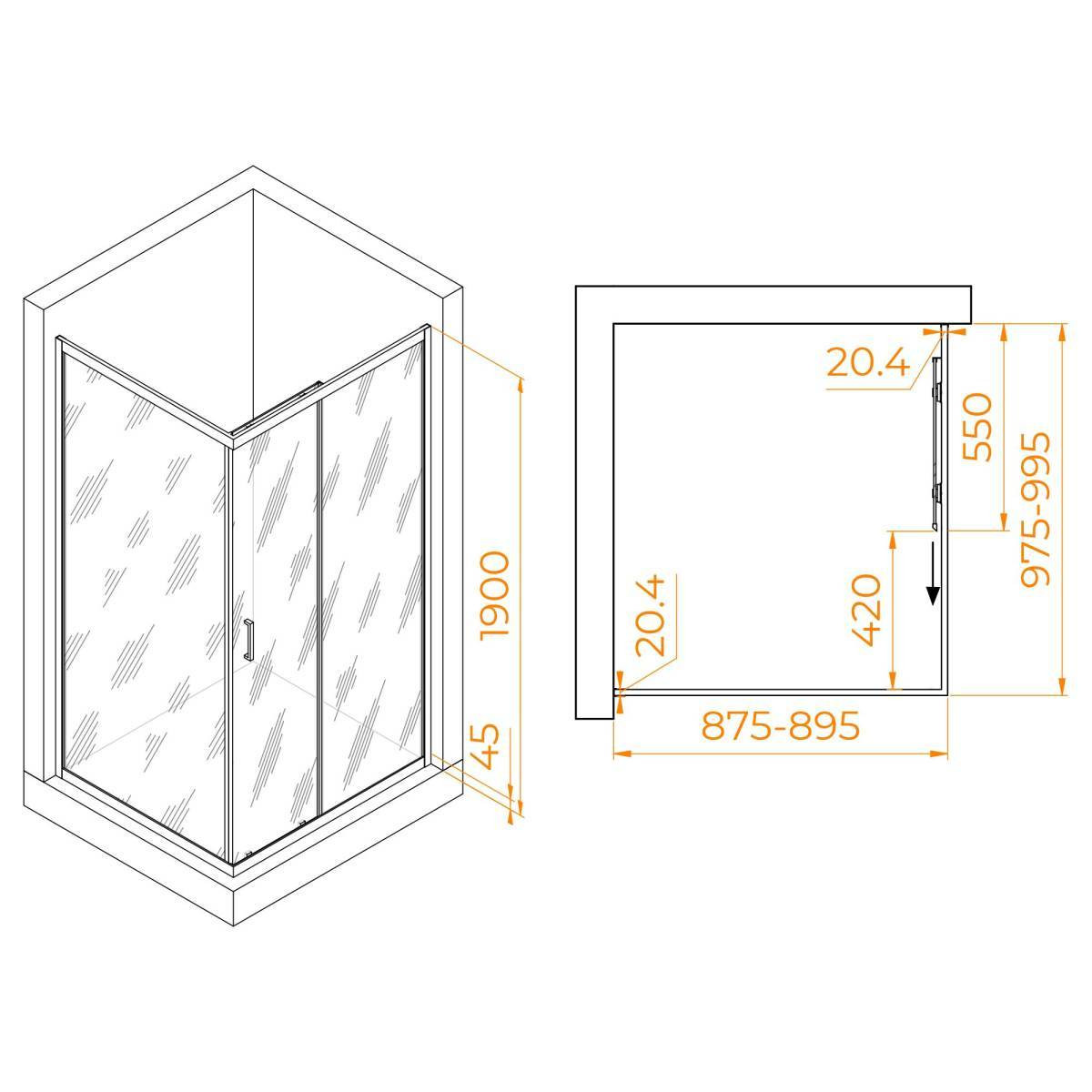 Высота душевого угла составляет 1900 мм, что позволит вам комфортно принимать душ, даже если вы высокого роста. Конструкция дверей раздвижная, что экономит место в ванной комнате. Этот душевой уголок также имеет регулируемый профиль, что позволяет легко настроить его на любые условия установки.