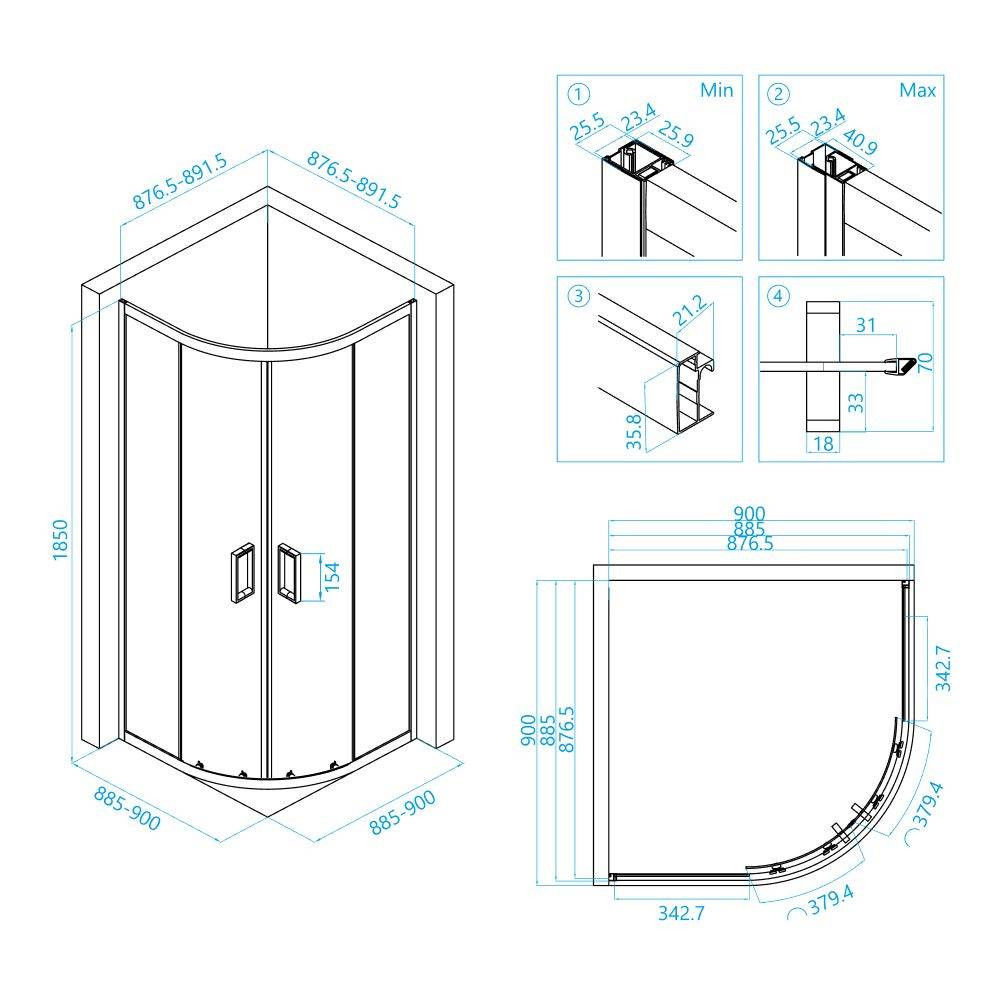 Размеры с диапазоном регулировок: (885-900)*(885-900)