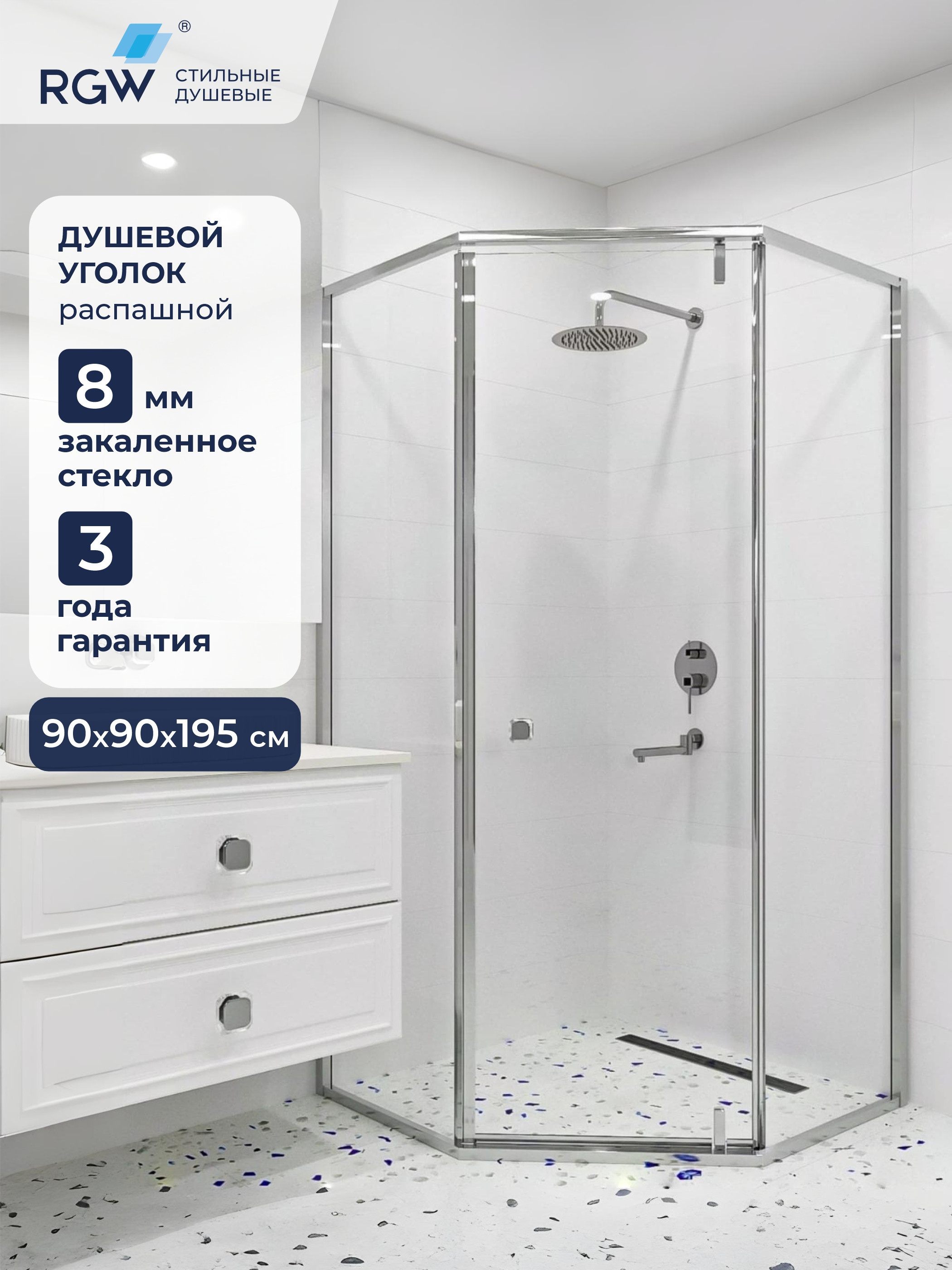 Душевой уголок 90*90*195 RGW HO-088 Трапеция,Хром,Прозрачное,8 мм (2 уп.) 350608899-11