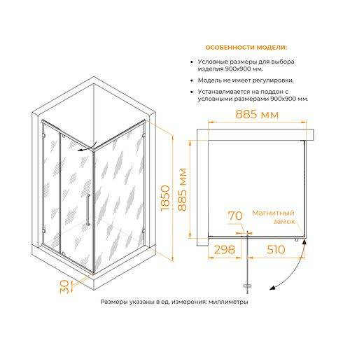 Душевой уголок RGW CL-035B 90х90х185см. Дверь распашная, цвет чёрный, стекло закаленное прозрачное 6мм. Без поддона. 350903599-14