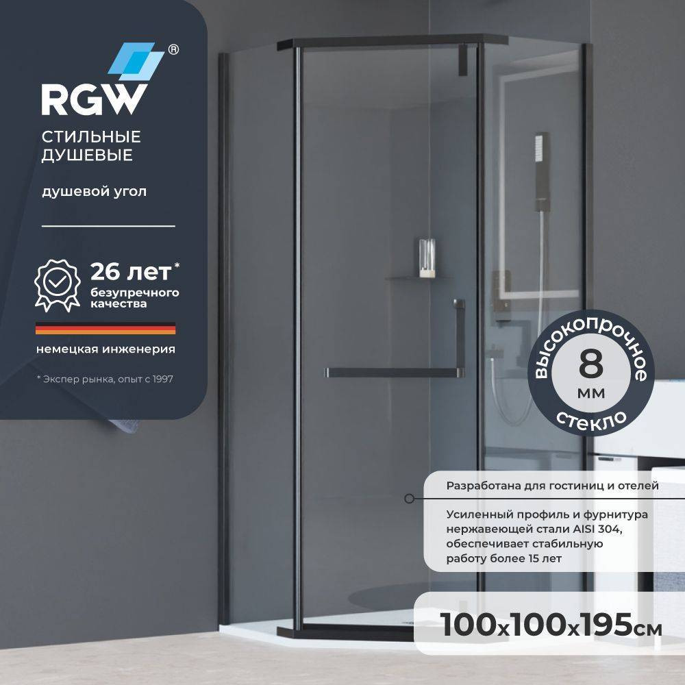 Высота общая: 1950ммТолщина стекла: 8ммУсловный размер: 1000x1000ммЦвет стекла: ПрозрачноеРазмеры с диапазоном регулировок: (990-995)x(990-995)Форма: ТрапецияШирина (F): 548ммШирина (Х): 520ммЦвет профиля: ЧерныйМатериал профиля: Нержавеющая сталь S 304Водонепроницаемые стальные петли: даКласс защиты герметичности : 1 класс герметичностиКонструкция дверей: РаспашныеМагнитный уплотнитель двери: даПокрытие стекла анти капля : Easy CleanПрофиль из нержавеющей стали: даРегулируемый профиль: даРучка: Нержавеющая стальУниверсальная установка: даРесурс эксплуатации: 15 летСерия: HotelСтрана производитель: Россия / ГерманияГарантия: 3 года________________________________________Душевой уголок RGW HO-081B - это высококачественное решение для создания уютной и комфортной ванной комнаты. Он обладает рядом преимуществ перед аналогами на рынке, которые делают его непревзойденным по соотношению цена-качество.Одним из главных преимуществ душевого уголка RGW HO-081B является его толщина стекла - 8 мм. Такая мощная конструкция обеспечивает высокую прочность и устойчивость к повреждениям. Благодаря этому, вы можете быть уверены в том, что ваш душевой уголок прослужит вам долго и надежно.Душевой уголок RGW HO-081B имеет форму трапеции, что делает его максимально удобным и функциональным. Такой дизайн позволяет использовать душевой уголок в малогабаритных ванных комнатах, не жертвуя при этом комфортом. Стекло душевого уголка прозрачное, что придает ему особый эстетический вид и визуальный комфорт. Оно не только выглядит высококачественно, но и обеспечивает высокую приватность, что является важным фактором для комфортного принятия душа.Цвет профиля черный, что позволяет душевому уголку RGW HO-081B стать изящным и элегантным элементом в вашей ванной комнате. Благодаря этому душевой уголок легко сочетается с любым дизайном интерьера и создает в вашей ванной комнате ощущение комфорта и роскоши.Водонепроницаемые стальные петли являются необходимым элементом для высокой прочности и надежности душевого уголка. Они гарантируют, что двери будут крепко закрываться, не пропуская воду и брызги, что обеспечивает высокую безопасность и чистоту в ванной комнате.Высота душевого угла составляет 1950 мм, что делает его просторным и удобным для использования даже для людей с высоким ростом. Каждая деталь была изготовлена с учетом комфорта и безопасности в использовании.Душевой уголок RGW HO-081B имеет класс герметичности 1, который гарантирует, что он полностью защищает вас от воды и брызг. Этот класс герметичности обеспечивает максимальный комфорт и безопасность во время принятия душа.Конструкция дверей душевого уголка распашные, что позволяет легко и удобно пользоваться им. Вы всегда сможете легко открыть двери и зайти в душ, не жертвуя при этом комфортом.Покрытие стекла анти капля Easy Clean обеспечивает максимальную чистоту и уход за душевым уголком. Благодаря применению этой технологии, на стекле не остаются следы пальцев и грязи, что обеспечивает вашему душевому уголку длительный срок эксплуатации.Ресурс эксплуатации душевого уголка составляет 15 лет, что является одним из главных преимуществ данного товара. Вы можете быть уверены в том, что душевой уголок RGW HO-081B прослужит вам долгие годы.Серия Hotel, к которой относится душевой уголок RGW HO-081B, обеспечивает высокое качество и надежность товара, что делает его одн